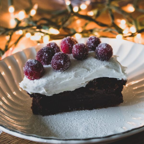 Festive Pumpkin Chocolate Cake with Sparkling Cranberries