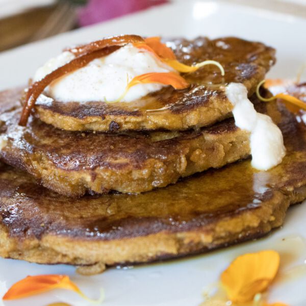 Pumpkin Pie Pancakes With Caramelized Pears